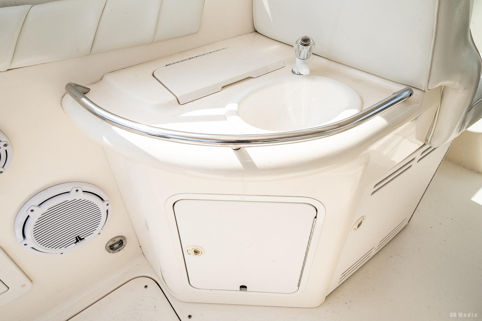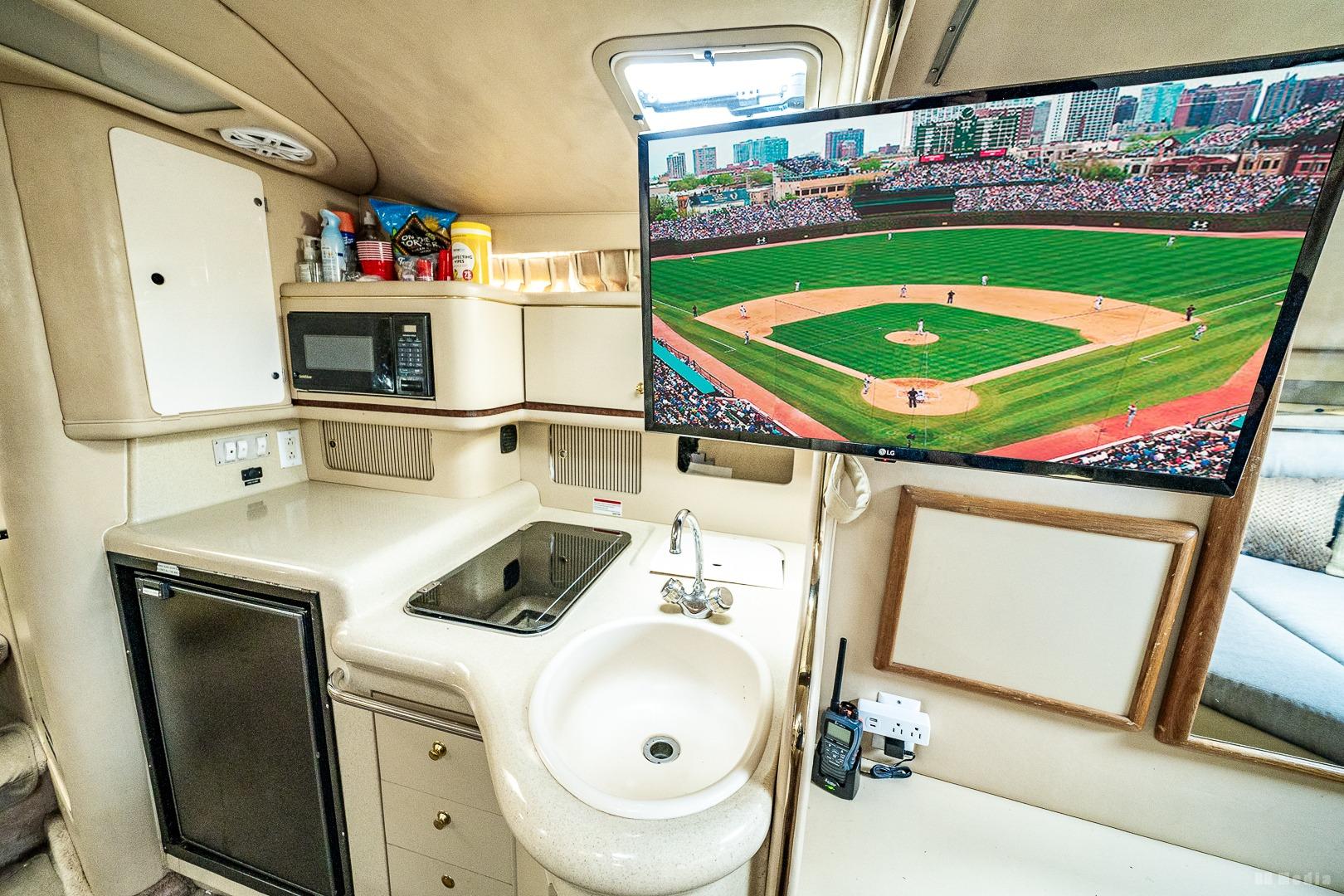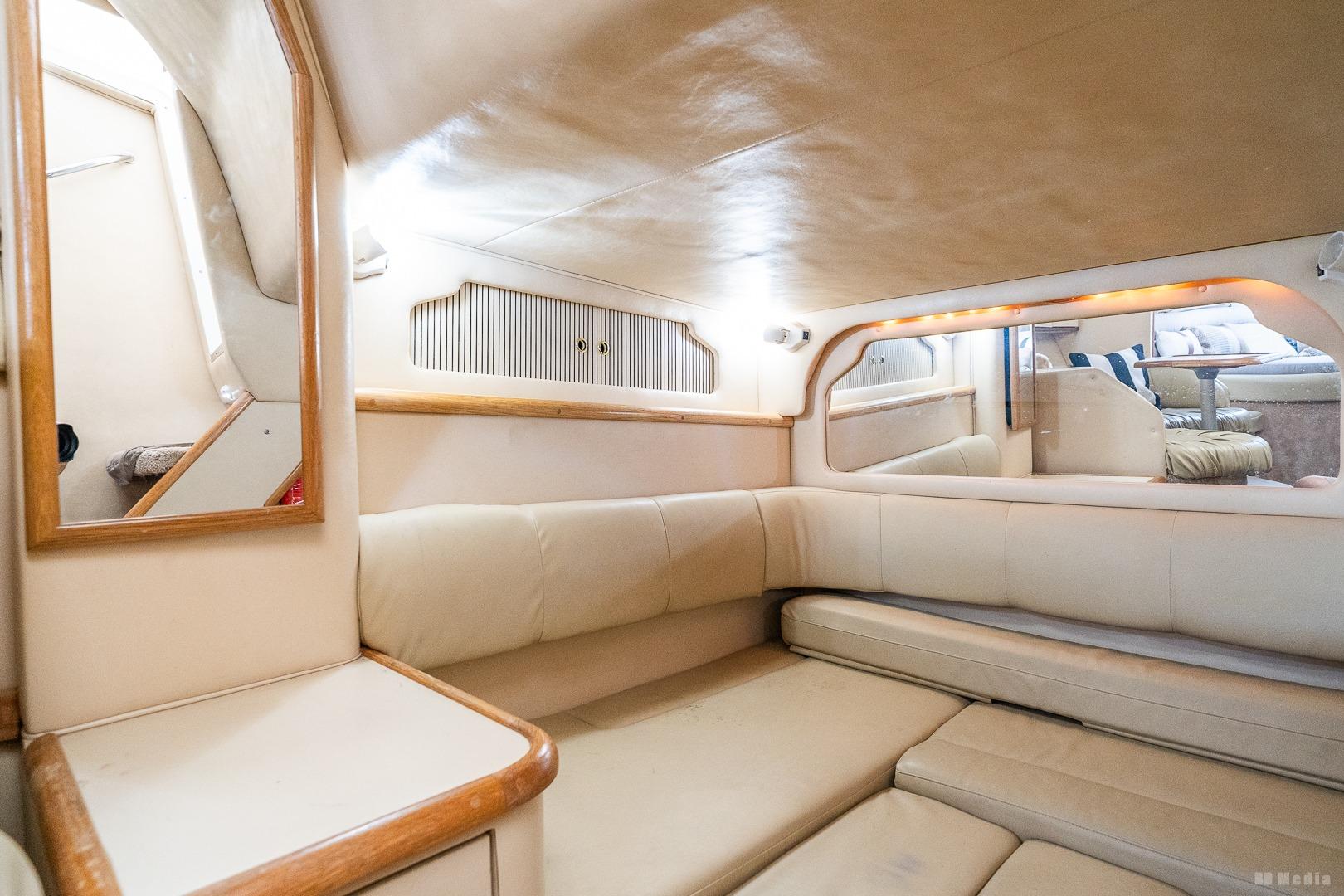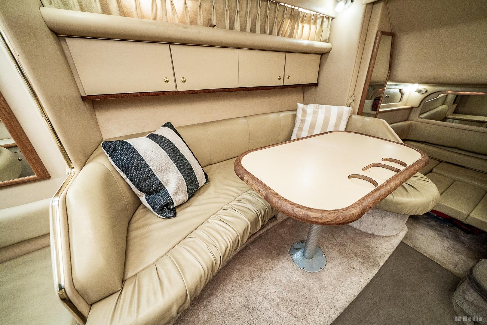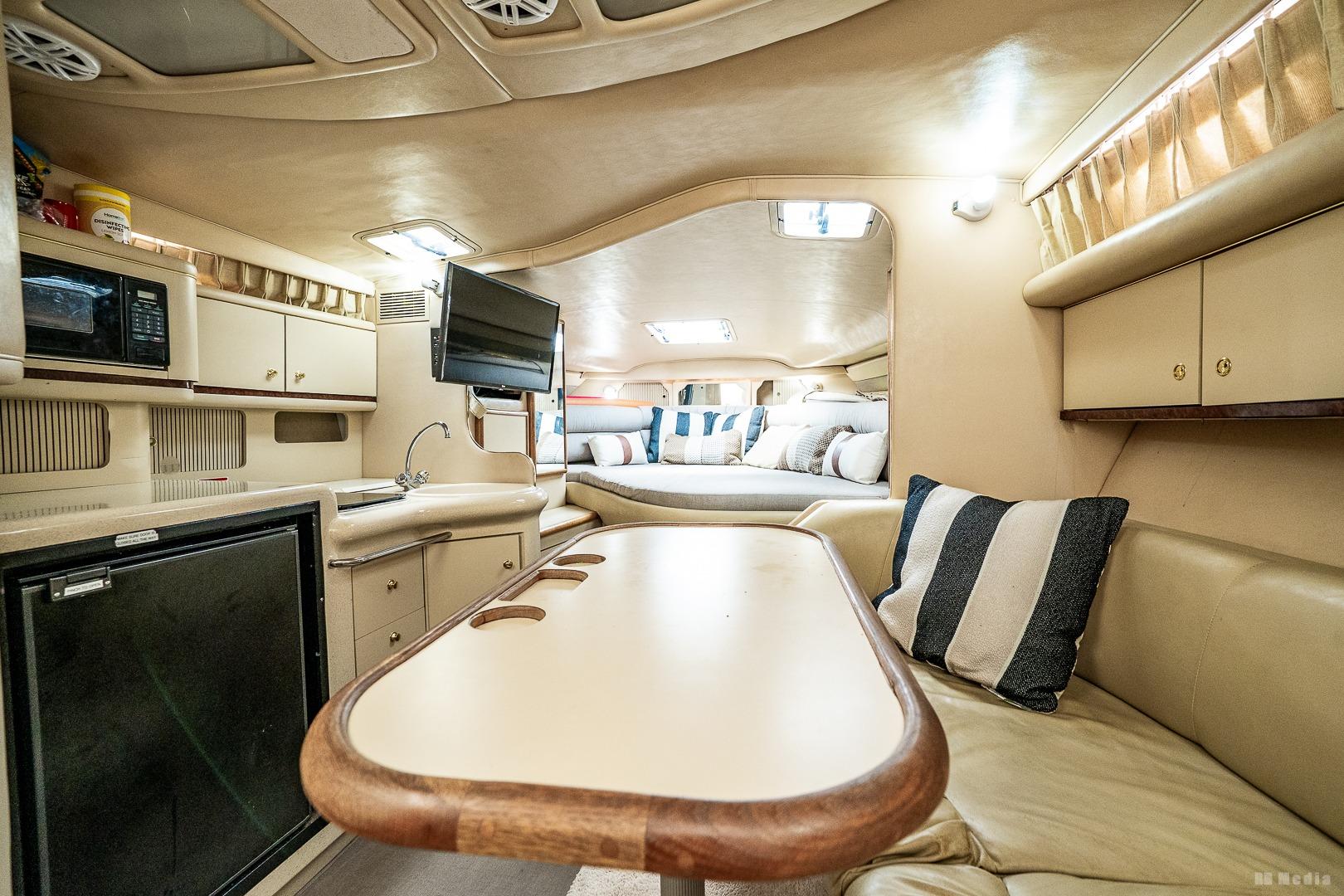 • Cockpit: Wrap-around seating, wet bar (ice maker not working), removable table